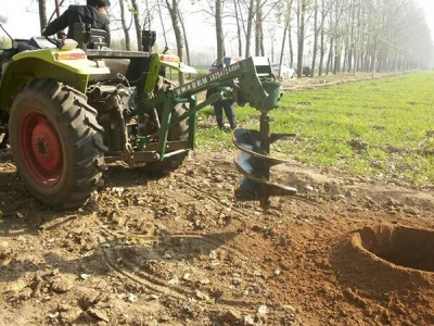 (3)挖到預定深度后,緩慢提起挖坑機,在挖坑機鉆頭離開地面后,松開工作開關,完成挖坑過程。